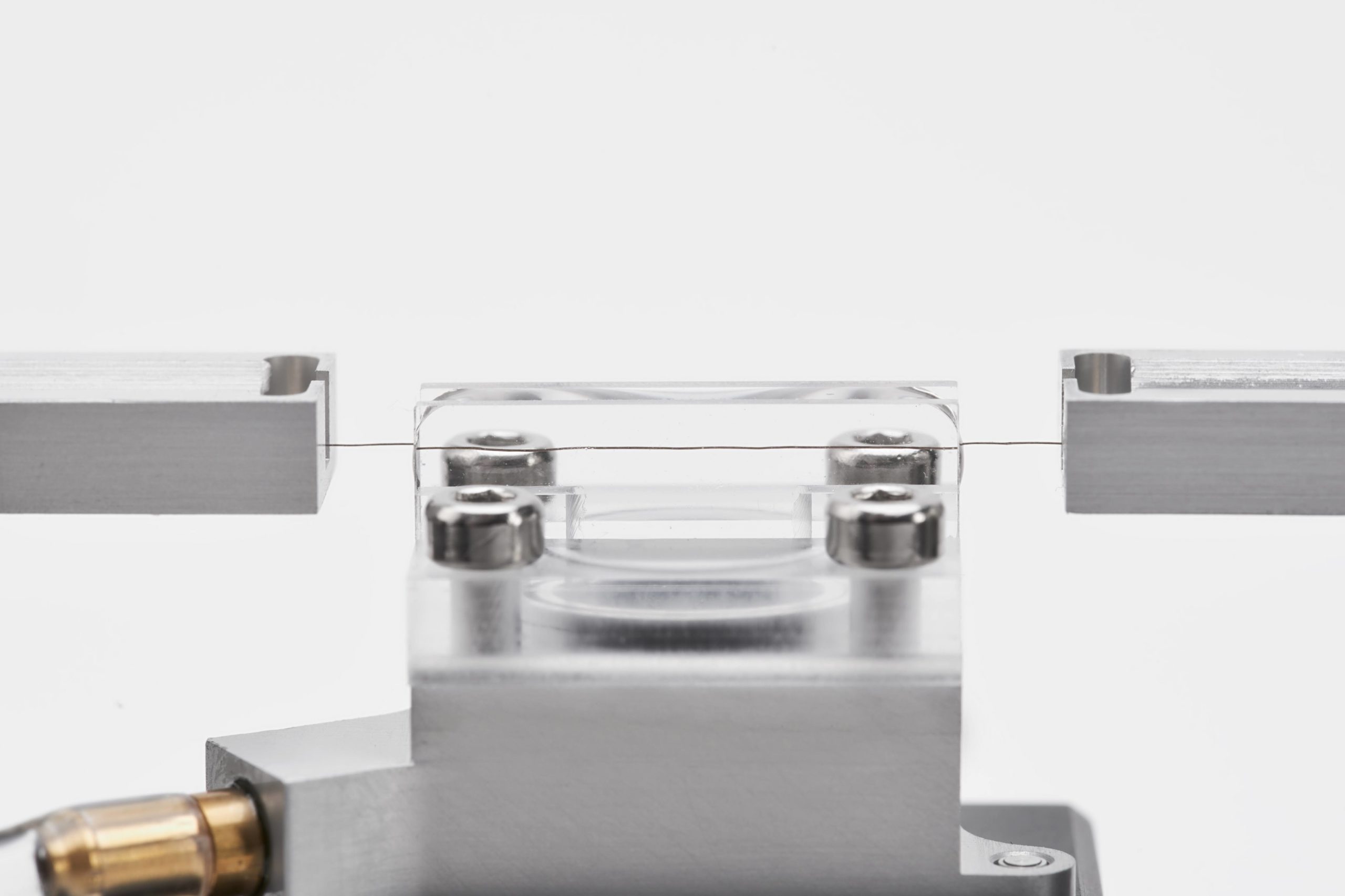 The LEX820 is a high-resolution extensometer, developed for brittle fibres that fail at low strain values. The DC micrometer-drive delivers exceptionally smooth travel, combined with a high positional repeatability required to capture accurate strain data. The LEX820 is supplied with either a 20N or 2N load cell which measure force data with an excellent linearity and low compliance. The open frame design means that it can also be used in conjunction with techniques such as X-Ray diffraction or neutron scattering. Additional modules allow for wet tensile measurements and interfacial sheer stress measurements.